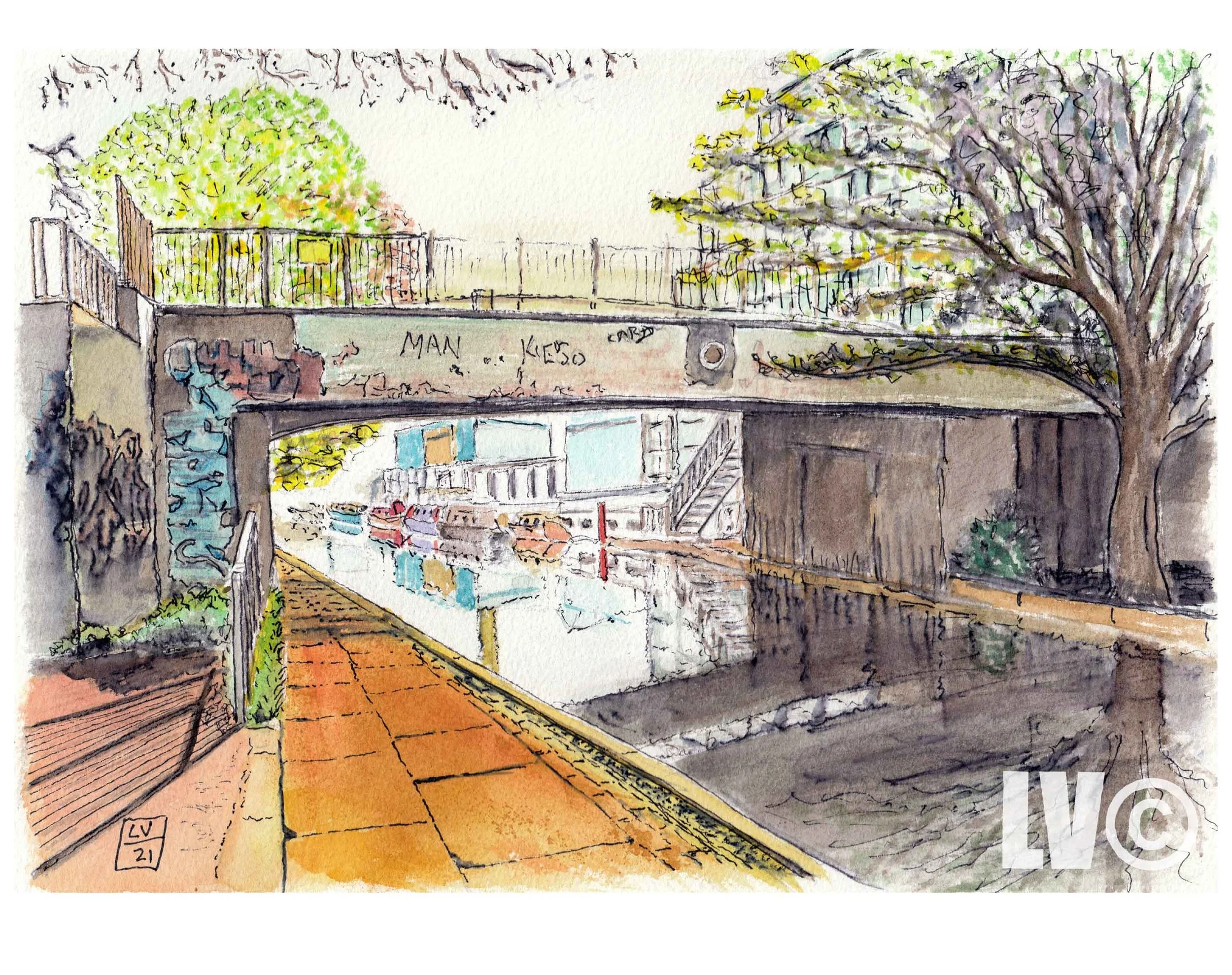 I was brought up on a boat on the Lancaster Canal so, as we emerged from Lockdown, I was drawn to the light, the reflections and the beauty of the Regents Canal just down the road from where I live in Camden. I felt the distinctive design and architecture of the bridges, locks and barges in my bones and, in a sense, it was like a return to my childhood. This ribbon of nature through north London - as it wends its way from the Victorian mansions of Little Venice, through the repurposed warehouses of Camden, Kings Cross and Islington, through Hackney to Mile End and Limehouse - was a way for me to reconnect with the world after the isolation of the previous year and a half. The beauty and light of these explorations moved me deeply and that is what I have endeavoured to capture in these paintings.